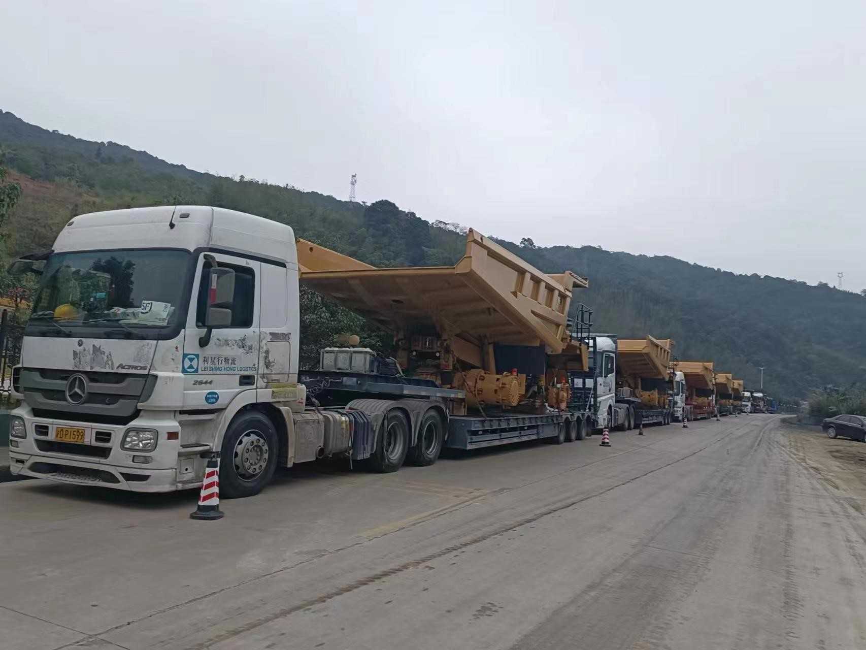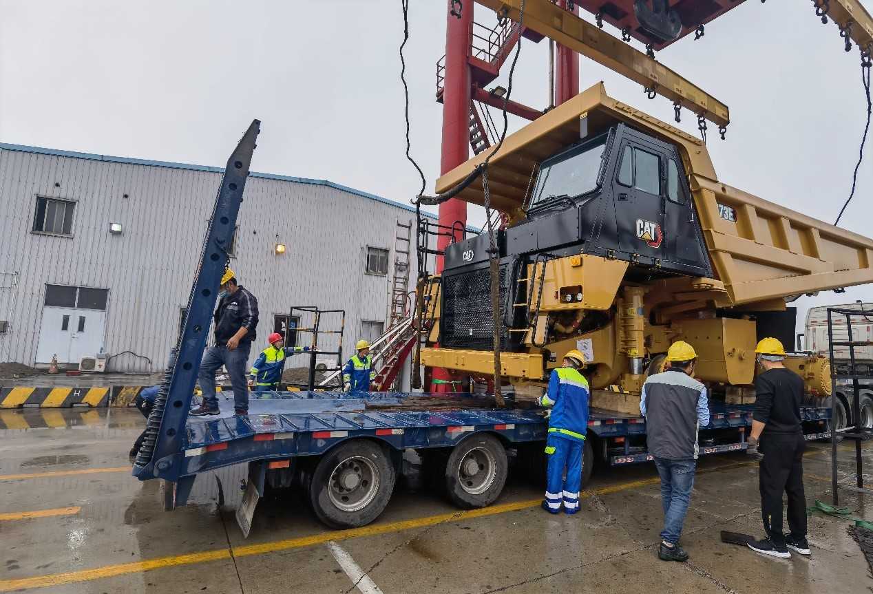 一批次發運7臺773E礦卡,超限設備運輸,押運車全程保障;目的地區域山路多,道路崎嶇,地形復雜;排除萬難,保證設備安全到達并如期交付。