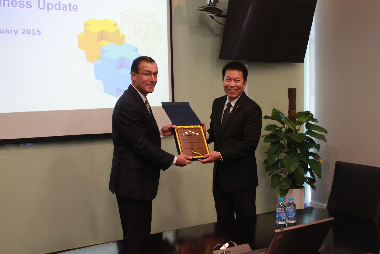 近日,經過卡特彼勒的嚴格審查,利星行機械發動機產品支持部昆山發動機車間榮獲卡特彼勒頒發的“五星級污染控制車間”榮譽稱號。2015年1月,卡特彼勒集團總裁Tom Pellette先生到訪利星行機械昆山總部,并將這一殊榮頒發給利星行機械集團首席執行官傅耀生先生。