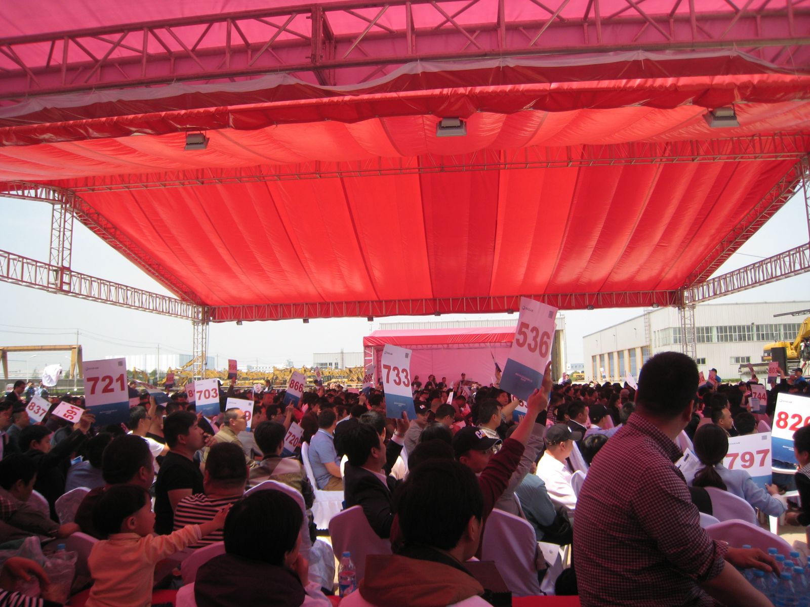 22日天公給力,頭一天還細雨靡靡,冷氣襲人的天氣,突然雨過天晴,陽光燦爛。客戶們經(jīng)過了一天半的“摸底偵察”,已經(jīng)對自己鐘愛的機器胸有成竹,紛紛提前坐到了拍賣區(qū),拿好了自己的競拍號牌,就等自己心中的“她”姍姍出場。