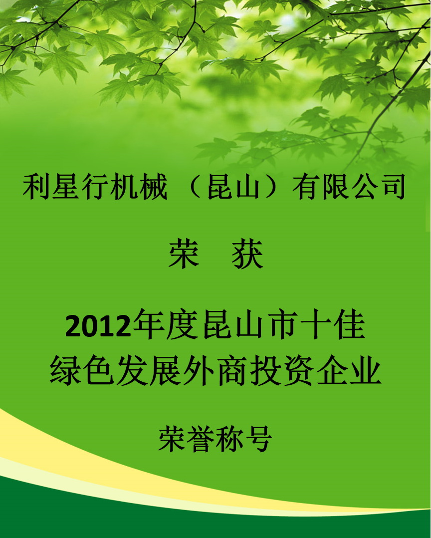 利星行機械昆山榮獲十佳綠色發展外商投資企業榮譽稱號