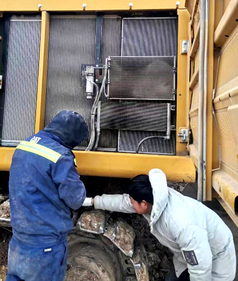 2023年2月初,客戶的工程面臨著工期緊,任務重且施工環境復雜等情況。“屋漏偏逢連夜雨”。一天,客戶的一臺Cat 349在施工時水箱被意外撞壞,需要更換。接到客戶的緊急報修電話,利星行機械售后服務團隊立即研判決策,考慮到路途遙遠的因素,決定讓服務人員攜帶配件,連夜坐車,歷經兩天兩夜趕到現場,第一時間幫助客戶解決了問題,沒有耽誤客戶的工期進度。